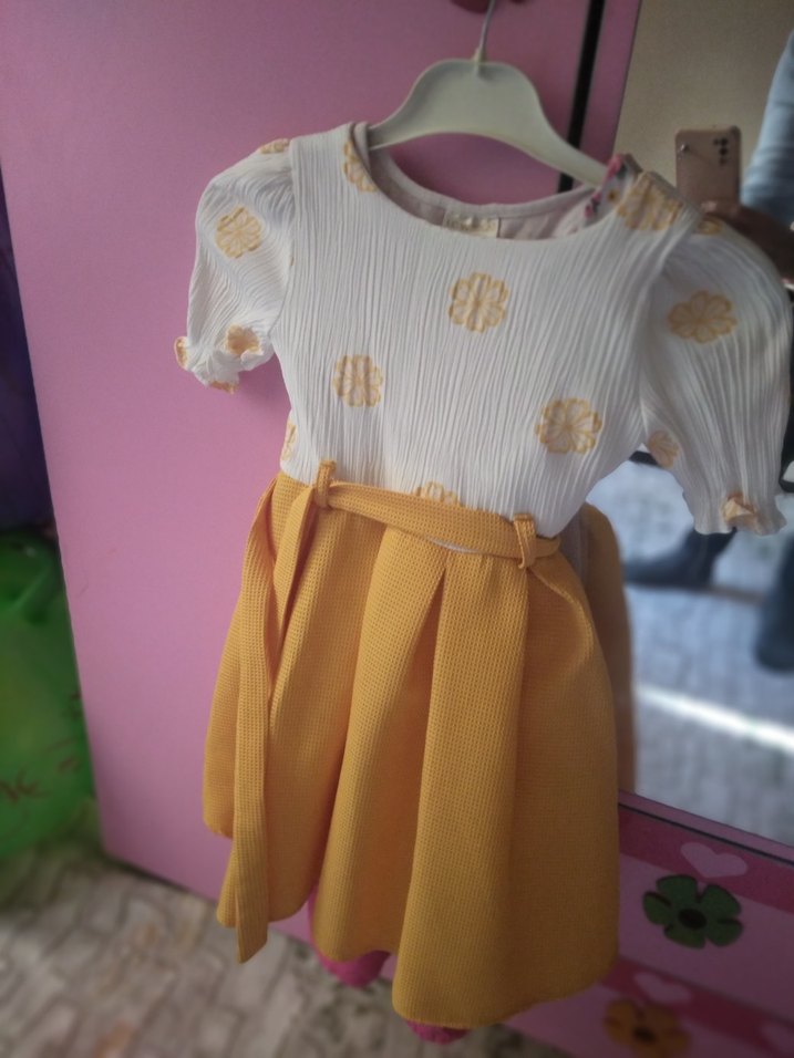 Puantiyeli Pilili Sarı Kız Elbisesi