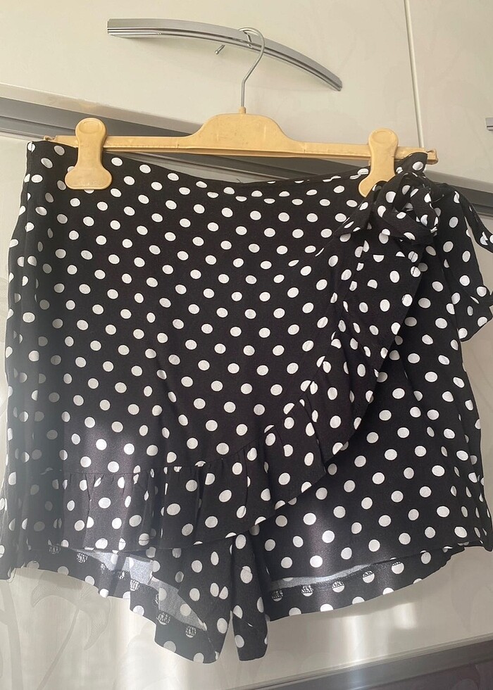 Puantiyeli siyah beyaz şort etek 38