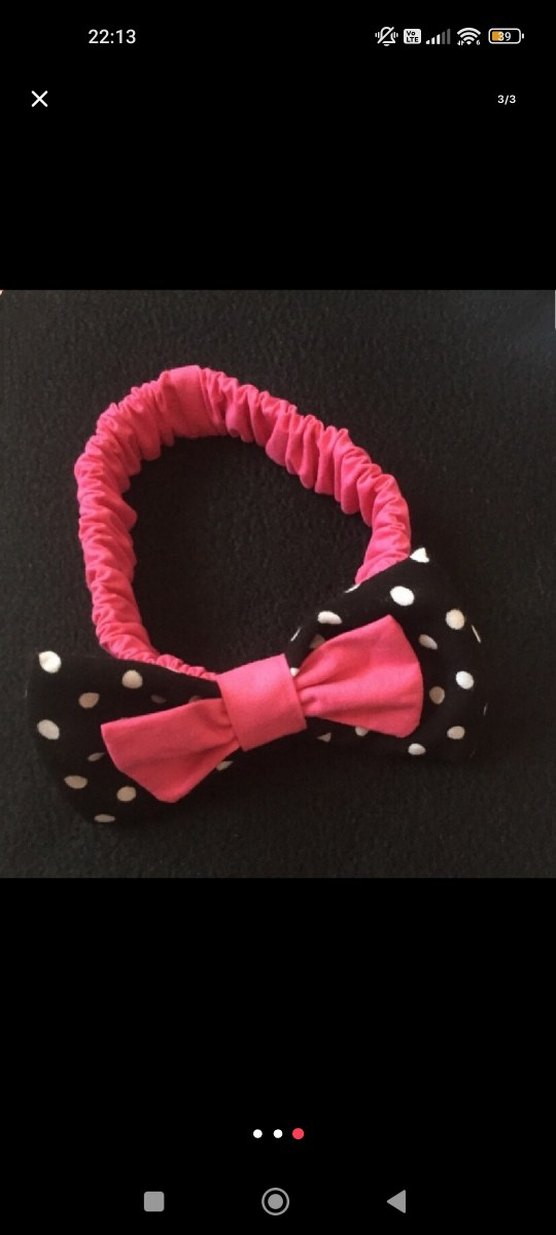 Puantiyeli Siyah Pembe Fiyonk Saç Bandı