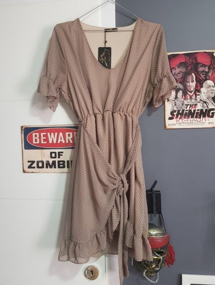 puantiyeli vizon renk elbise