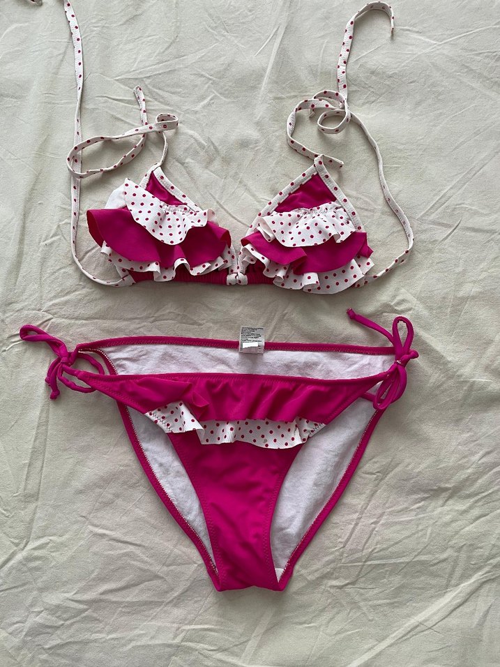 Kadın bikini, askılı ve volanlı detaylara sahip. Canlı renkli desenlerle bohem ve iddialı bir tarz sunar. Plaj için uygundur.