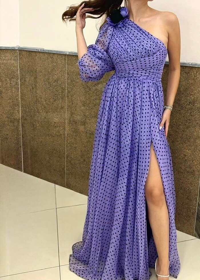 Puantiyeli Yırtmaçlı Abiye Elbise