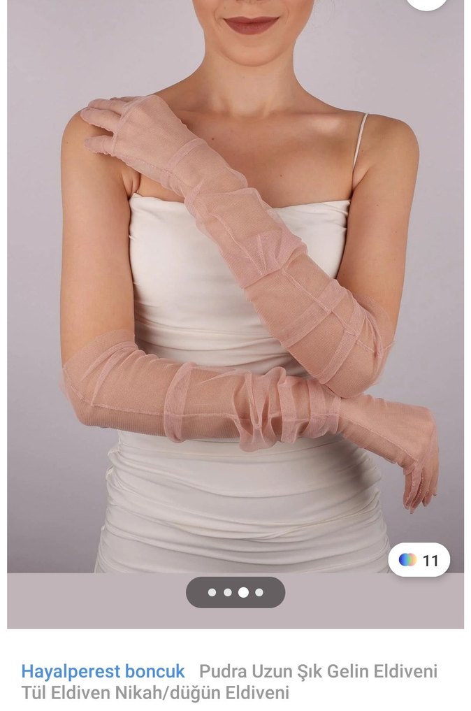 Sentetik kumaş, pliseli tasarımlı pudra rengi eldiven, minimalist ve bohem tarz için uygun. ✨ Nişanda kullanmak için almıştım ama yanlış rengi aldığımdan kullanamadım, rengi çok güzel ve çok hoş duruyor. Elbiseme uysa kesinlikle kullanacaktım.