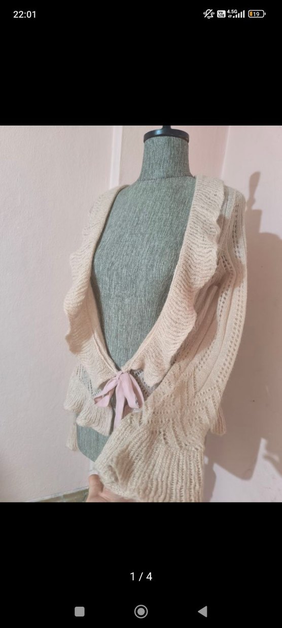Pudra renkli, örgü kumaştan üretilmiş, straplez ve fitted kesim midi uzunluğunda bohem tarzda hırka. Önünde bağlama detayı vardır, günlük kullanıma uygundur.