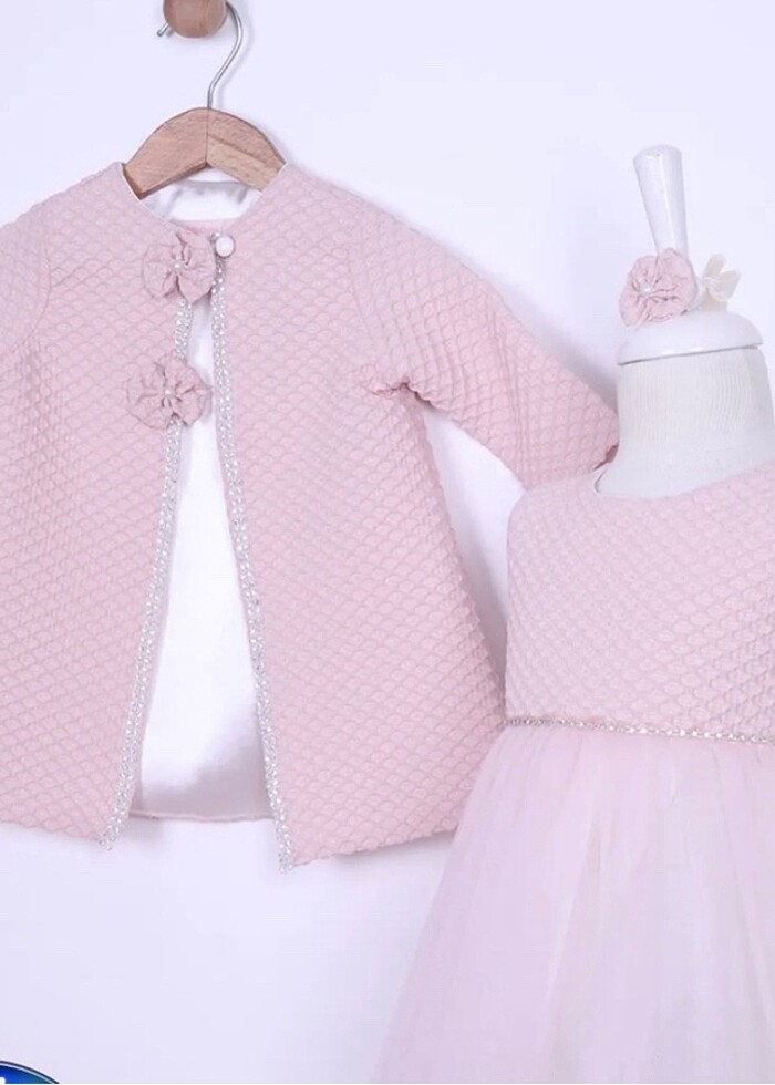 Bilinen alışveriş sitesinden yakın zamanda 1000 üstü bir fiyata alındı. Yalnızca 1 kez düğünde giyildi. İlk resimde görünen pudra ceketi de fiyata dahildir ve ceket bandana ile birlikte gönderilecektir. Etiketi 5 yaştır ancak 4 yaş için uygundur.