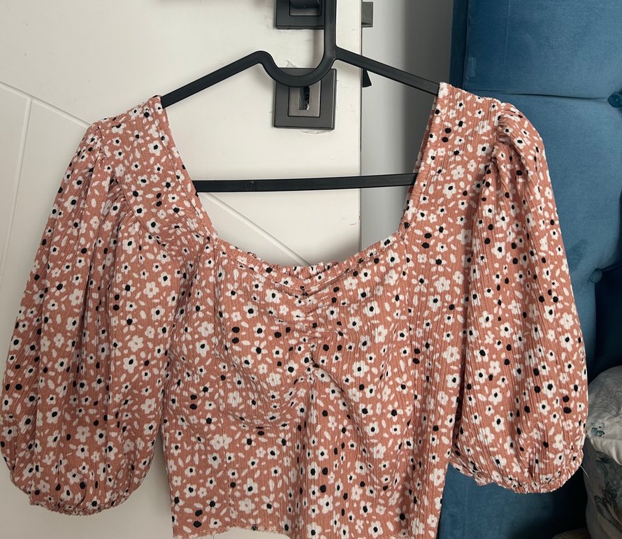 Çiçek desenli, kolu salaş kesim kadın bluz. mankende gogus çok küçük ama ben 75B destekli sütyenle de giydiğimde güzel oluyordu
