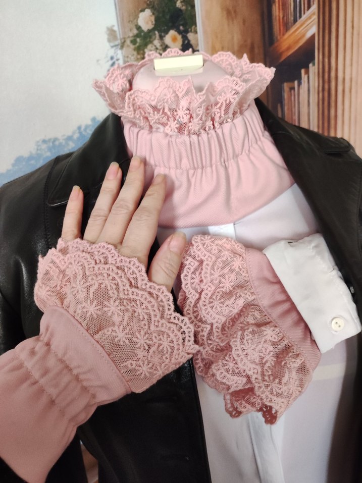 Pastel pembe renkli, dantel detaylı örme kumaştan kadın eldivenler, klasik zarafeti Parisli gotik tarzıyla birleştirir. kollukların bilek kısmı lastiklidir şimdi kolay çıkarıp takılabilir kolluk ilanıdır ☝️☝️☝️ dilerseniz yakalık ilanı ile takım olarak yeni ilan açabilirim