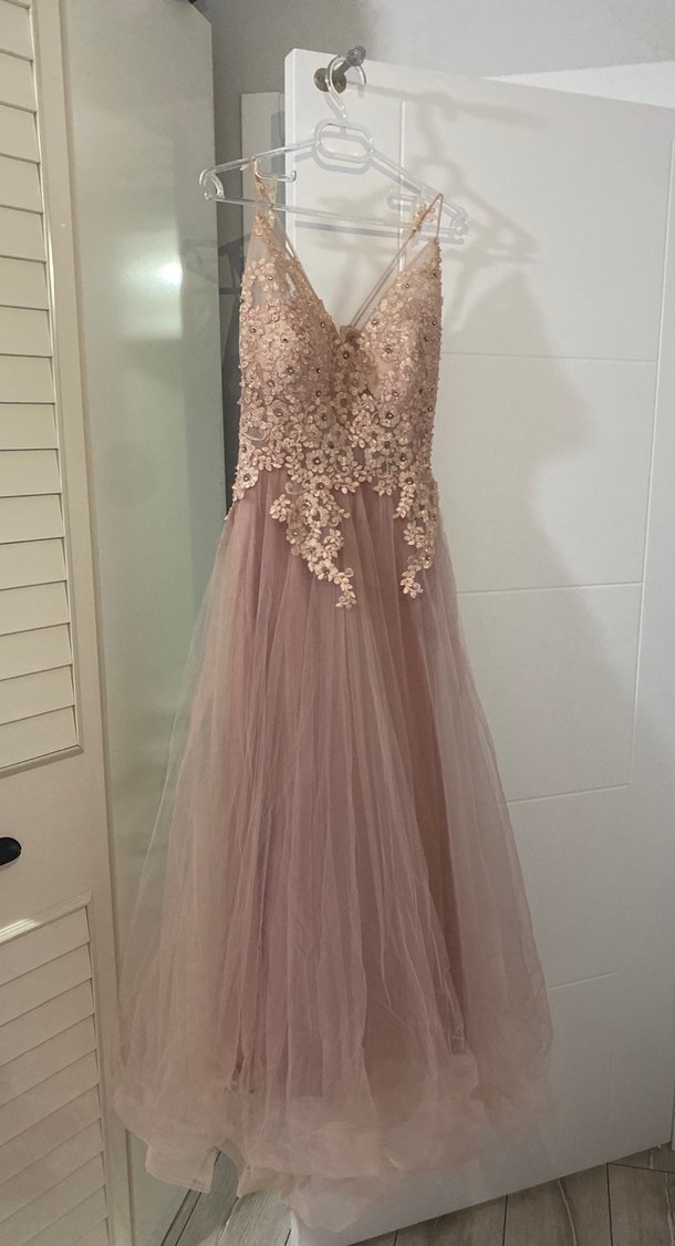 Pudra Dantel Taş İşlemeli Uzun nişan düğün Abiye Elbise