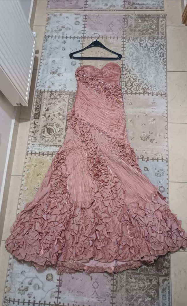 Pudra Drapeli Straplez Uzun Abiye Elbise