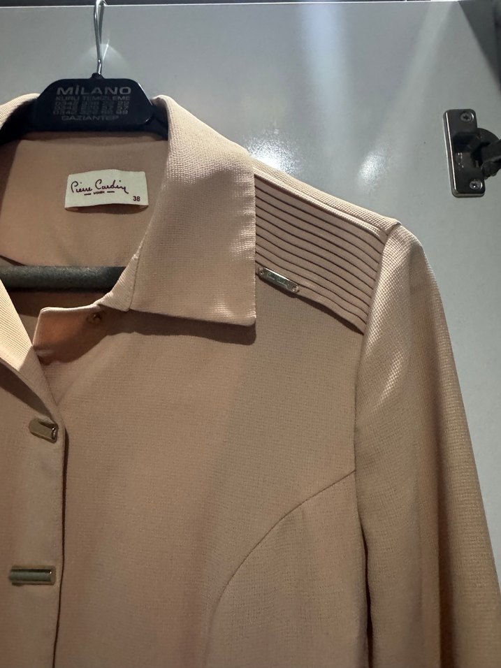 Pudra tonları petek zemin yumuşak kumaş üstte çıtçıt detayı alt kısımda gizli düğme detayı çok şık tasarım