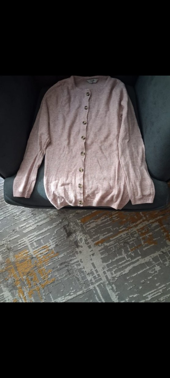 Pudra renkli pamuklu kumaştan, düğmeli, uzun kollu ve yuvarlak yakalı kadi. hirka.Hic giyilmedi hijyen amaçlı yıkadım bir defa beden standart kalıbı dar biraz 34 36 giyene olur