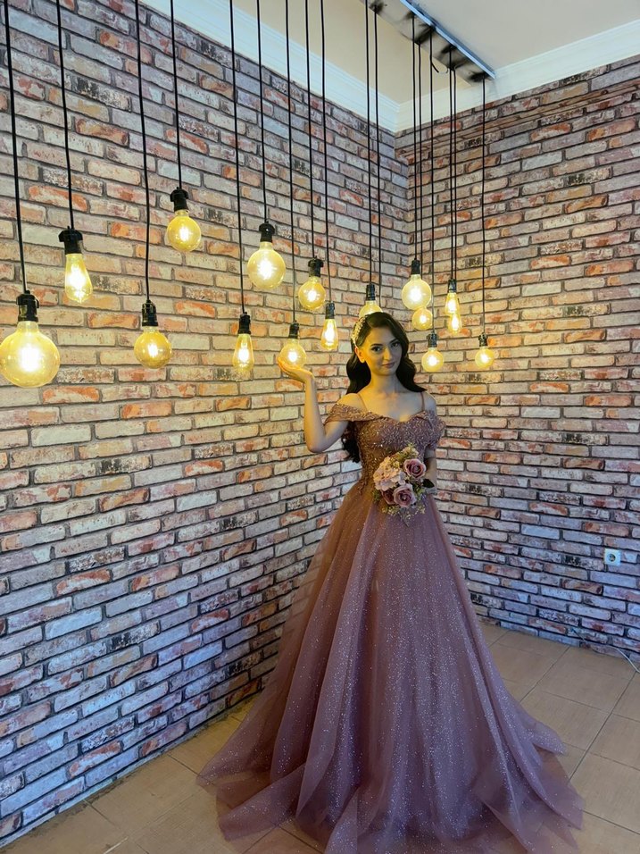 Pudra işlemeli ve boncuk detaylı, askılı straplez, uzun ve oturan nişan elbisesi, bohem ve göz alıcı tarzda.