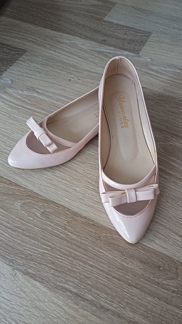 Pudra renkte, stiletto topuklu, modern klasik tarzda kadın babet. Kurdele detayı bulunur. Kauçuk malzemeden, düğün için uygun. Pastel ve desensiz. Dar kalıp taraklı ayakkara önermem.