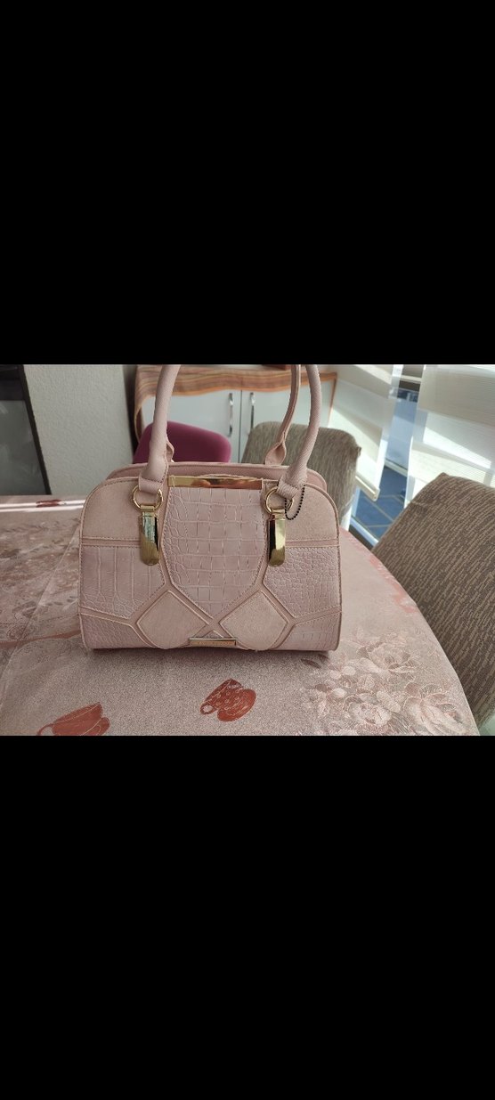 Pudra kadın çantası, tokalı kulplara ve çağdaş, desensiz tasarıma sahiptir. Pastel tonlarıyla Paris tarzı ve trend günlük stil için uygundur.