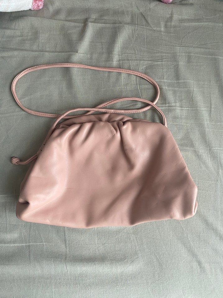Pudra renkli deri kadın çantası, pastel tonlarda ve minimal tasarıma sahip. Düz ve desensiz yapısıyla günlük sokak stiline uygun, zahmetsiz şıklık sunar. Defosu belirtilmiştir.