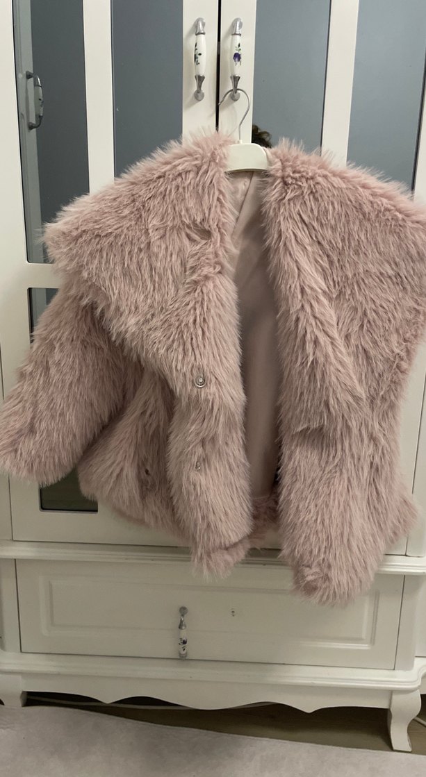 Pudra Kadın Suni Kürk Midi Ceket