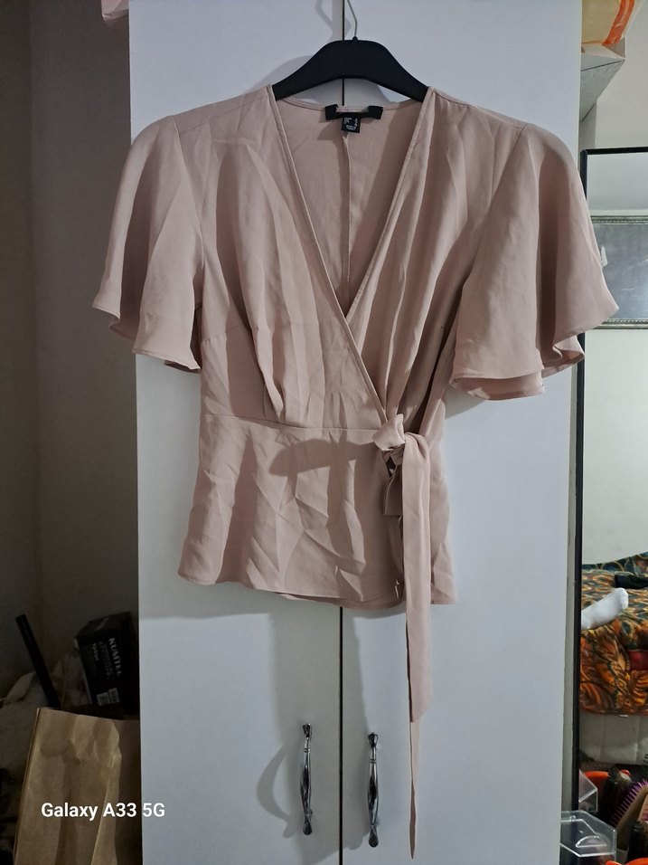 Kısa kollu, vücuda oturan şık bir günlük bluz. V Yaka Yandan Bağlamalı. Hiç giyilmedi, temizdir. 34/xs bedendir