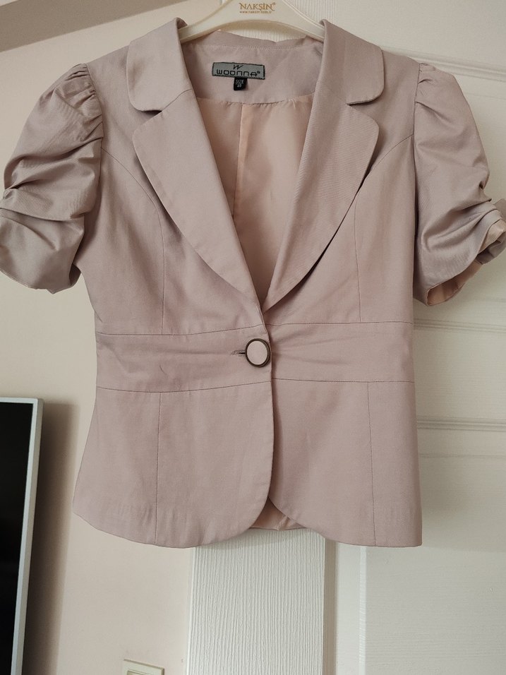Pudra Kısa Kollu kolu gül detaylı Kadın Blazer Ceket