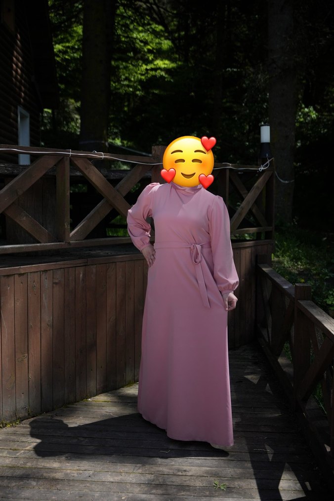 Pudra Krep Uzun Tesettür Elbise