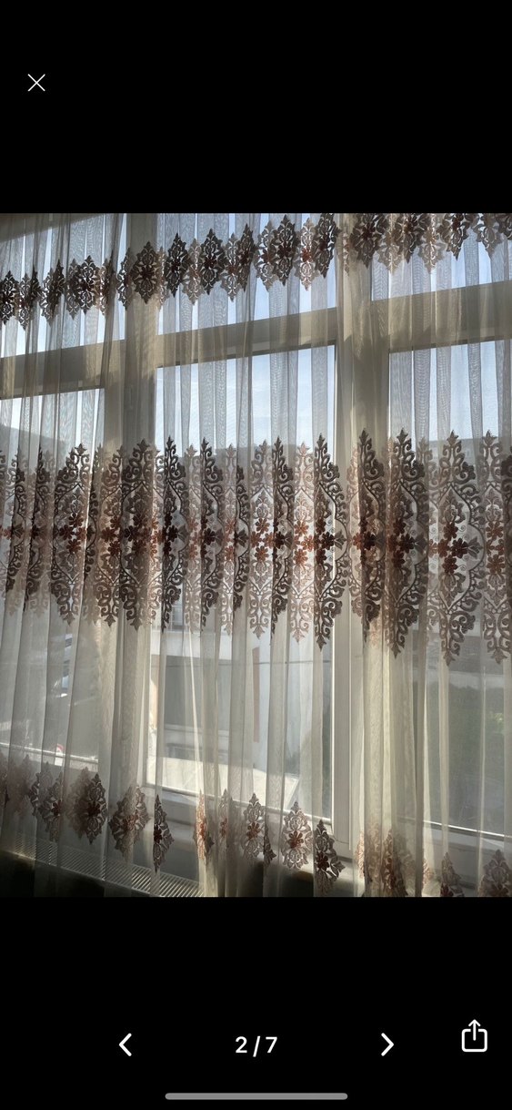 Yumuşak krem kumaş üzerine pudra nakışlı desenlere sahip, geleneksel tarzda tül perde, hafif ışık geçirgenliği sağlar. Desenleri kurdela işleme ve inci detaylardan oluşmaktadır indiler düşme yapmaz metal kakmadır bir kaç kez yıkandı herhangi bir sorun oluşmadı taşındığım için ölçüsü uymuyor. 390 en 245 boy ölçüsüdür.