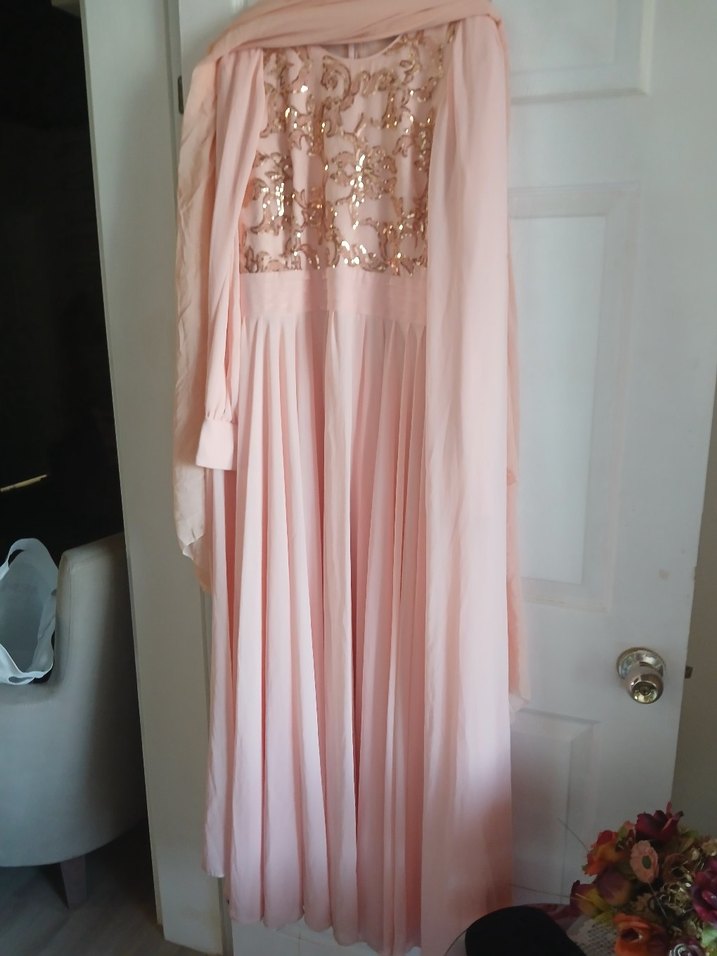 Pudra Nakışlı Uzun Kollu Kadın Abiye