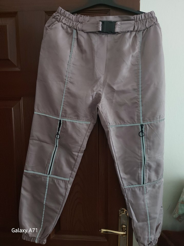pudrqrenkli, fermuarlı ve notched paraşüt kumaş pantolon cepli fermuarlı tarz pantolon