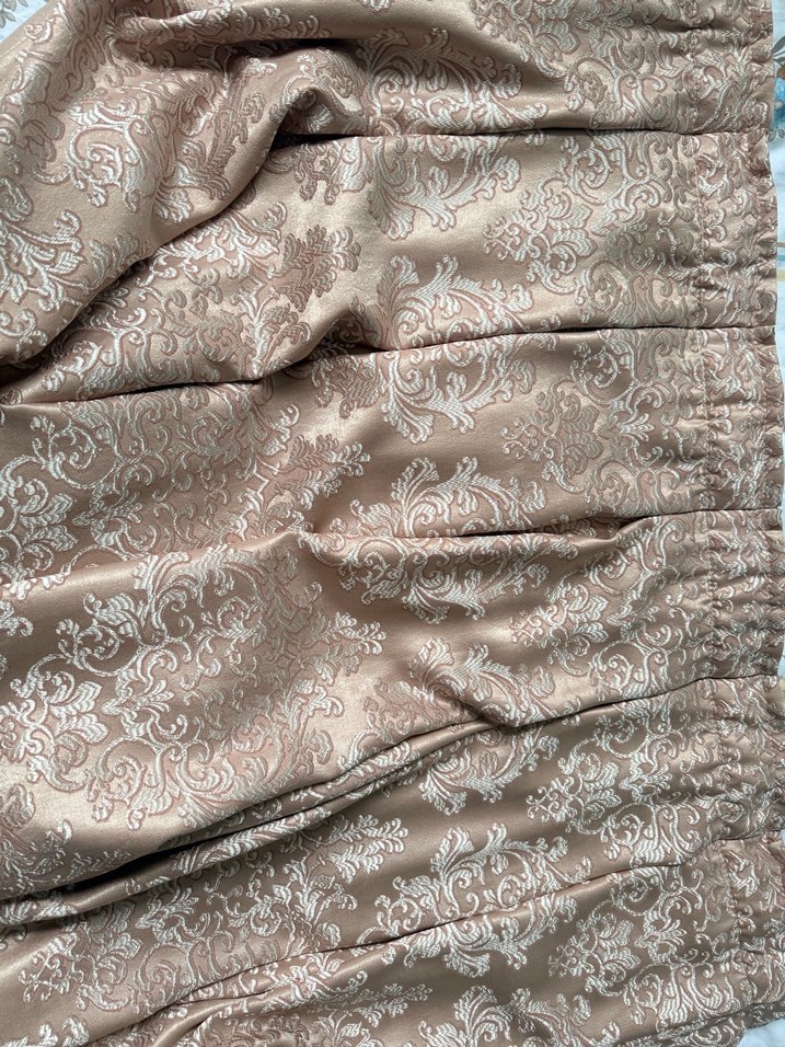 Pudra pembe arası, parlak görünümlü ve klasik tarzda düz fon perde. Kumaşı pürüzsüz dokuda ve şık bir görünüme sahiptir. En 81 boy 2.58-2.59 arası 2 adettir