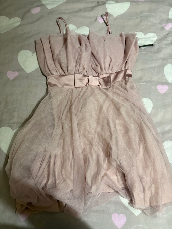 Pudra pembe renkte, drapeli detaylı ve askılı straplez midi abiye elbisedir. Belde fiyonk kemer bulunur, düğün ve özel günler için uygundur.