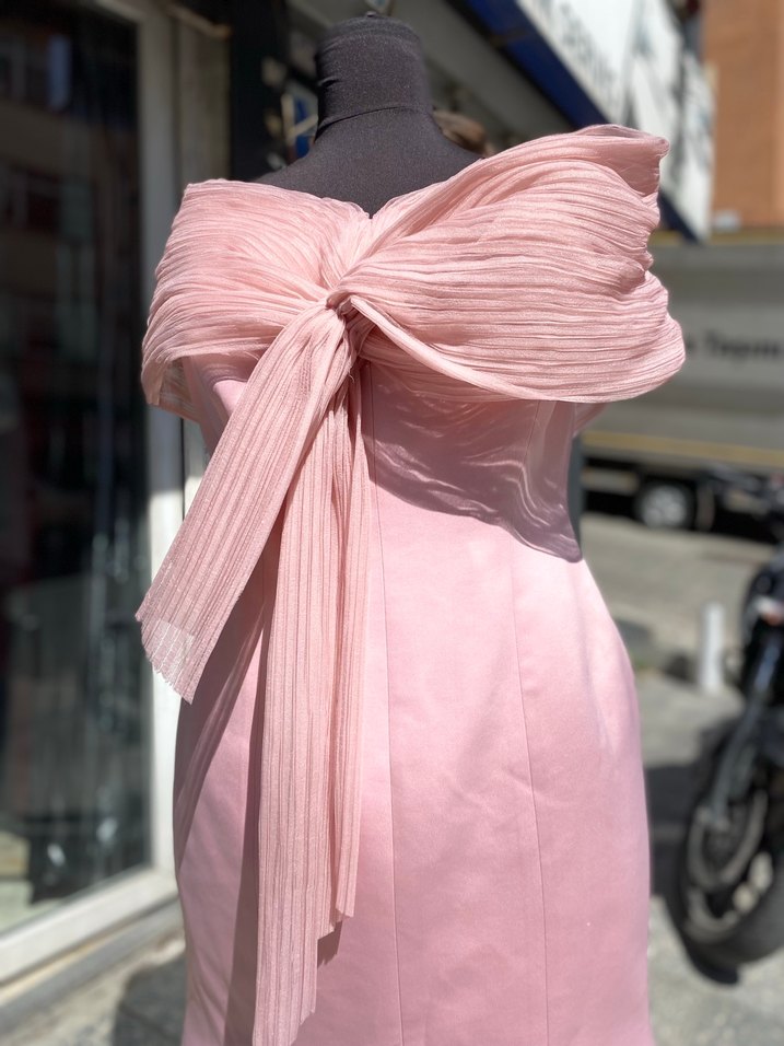 Pudra Pembe Drapeli Uzun Abiye Elbise
