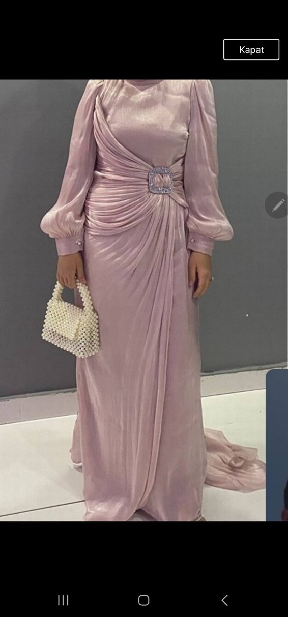 Pudra Pembe Drapeli Uzun Abiye Elbise SATILIK