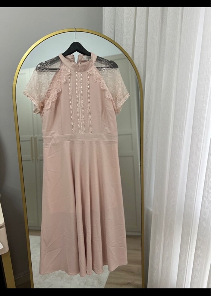Etiketi yok ama hic giyilmedi. Modelin boyu 175. Kollari dantel detayli. Yurt disindan alindi. 175 boy da 83 kiloya kadar olur.