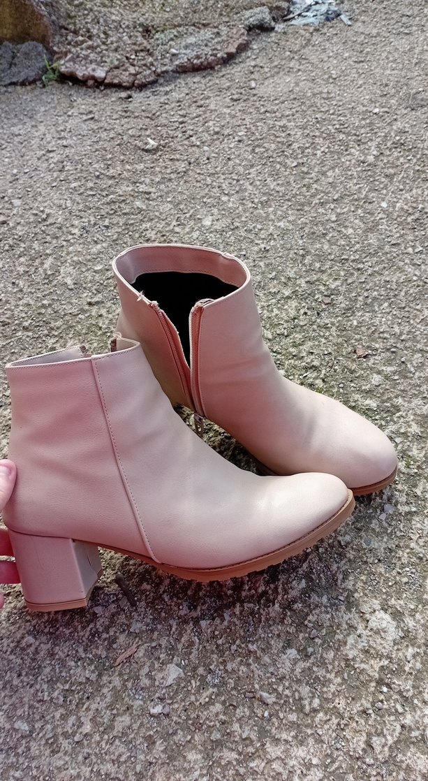Pudra pembe renkte, blok topuklu ve fermuarlı kadın botları. Kauçuk malzemeden üretilmiş olup, minimalist ve normcore tarzıyla günlük kullanıma uygundur. temizdir 40 numara 6 7 cm topuk boyu