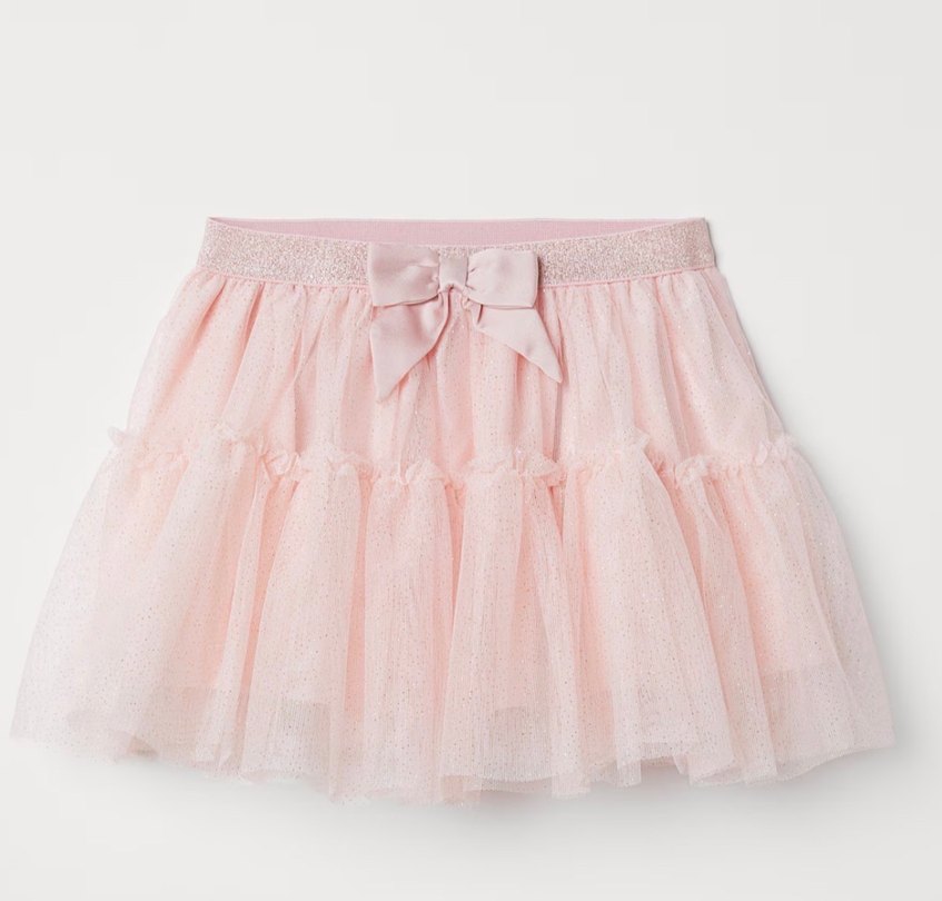 Bu pembe kız çocuk eteği, yumuşak fırfırlar ve belde fiyonk detayı ile klasik ve şık bir görünüm sunar.