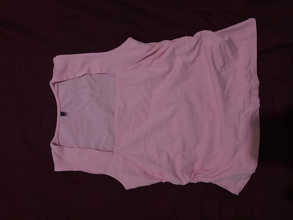 Pudra Pembe Kolsuz Bluz Rahat kalıp, günlük kullanıma uygun. Temiz ve sorunsuz. Bi sefer kullanıldı
