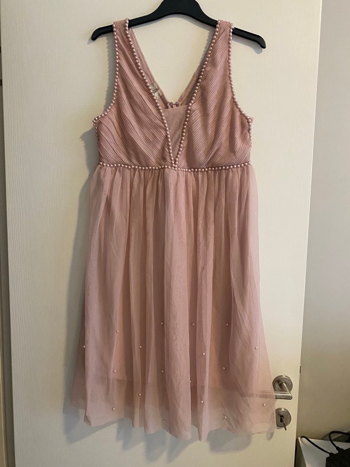 Pudra Pembe Midi Bohem V Yaka Abiye Elbise