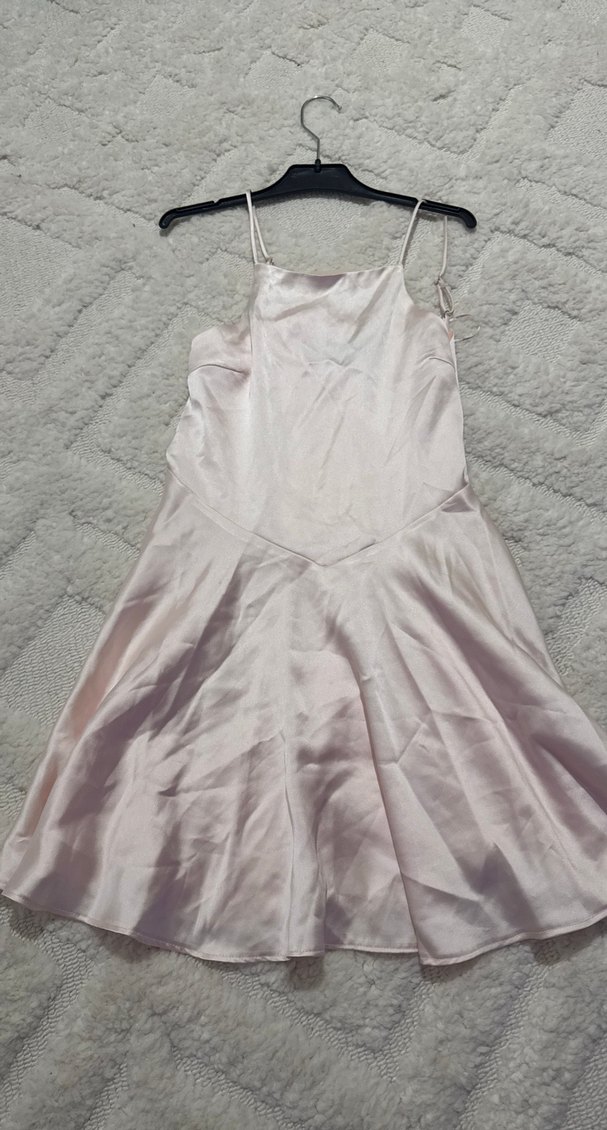 Pudra Pembe Midi Drapeli Straplez Elbise