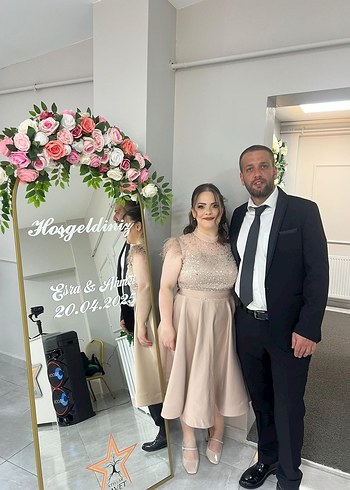 Pudra pembe renk, midi boy, kollarında tüy detaylı. Deforme yoktur. 1 kez giyildi 42 beden