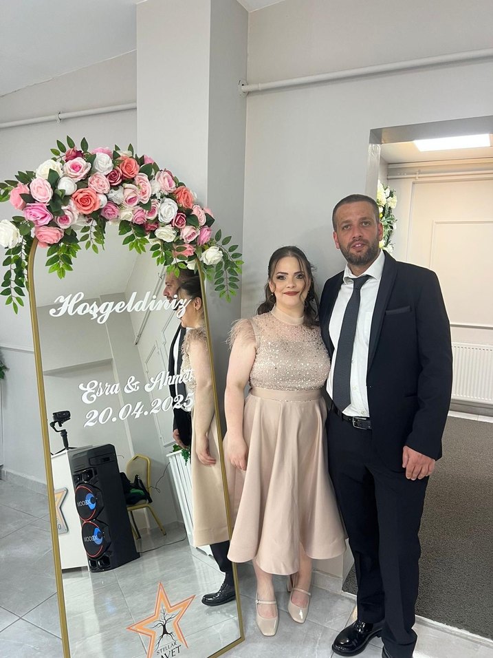 Pudra pembe Mini Şeffaf Detaylı Düğün Elbisesi