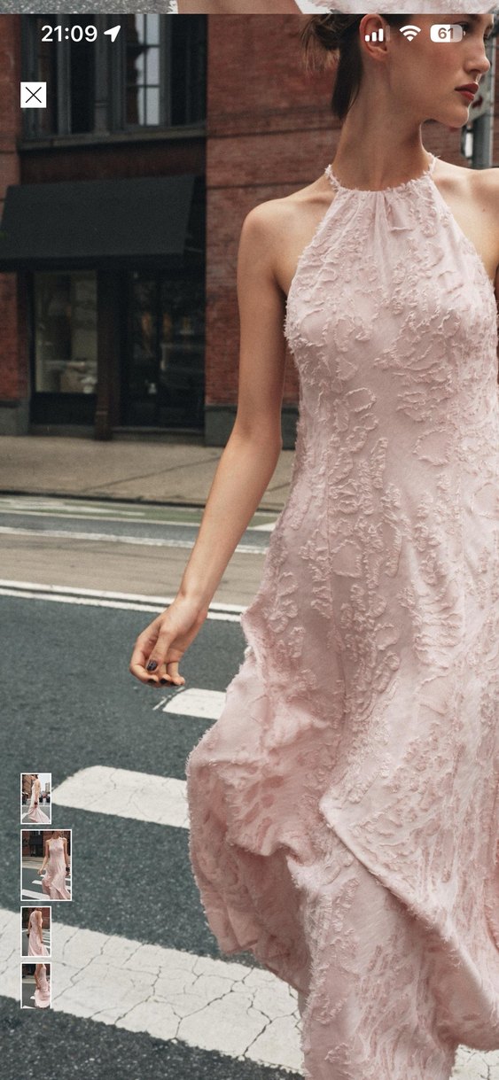 Pudra pembesi renginde, nakış detaylı, askısız ve kolsuz uzun abiye elbisedir. Drapeli ve klasik kesim ile düğünler için uygundur.
