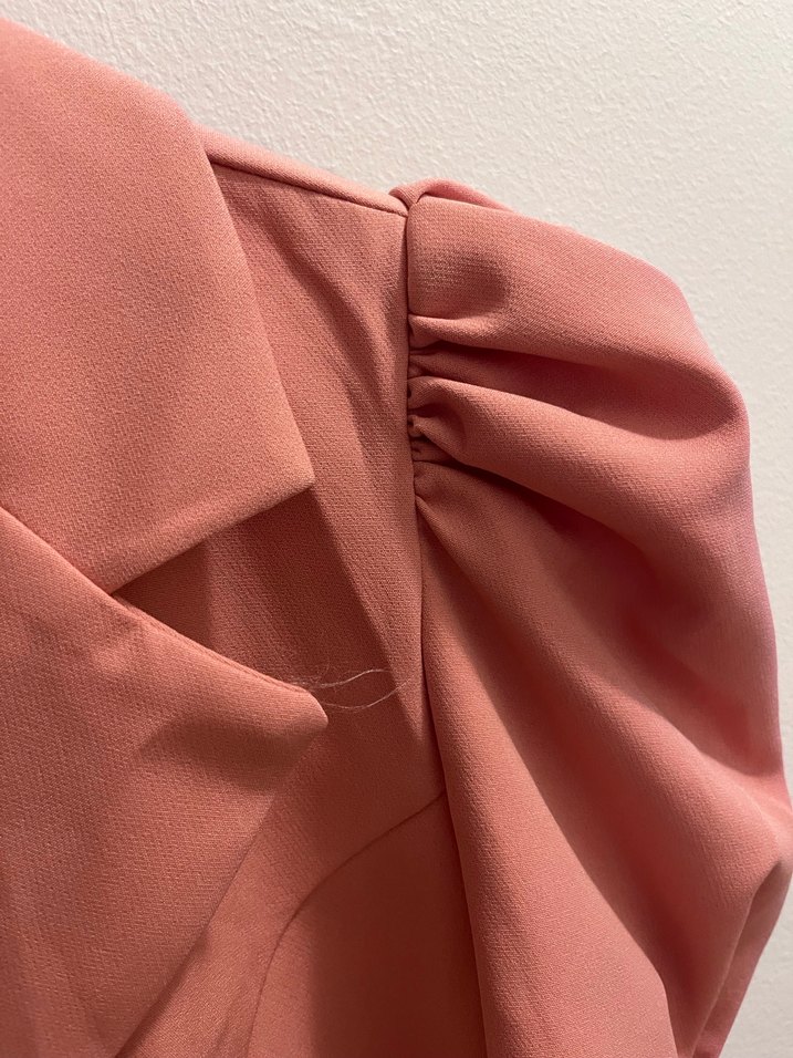 Pastel pudra pembesi, notç yaka ve düğmeli detaylara sahip elbise Uzun ve regular fit, ofis için uygun, yumuşak sentetik kumaş.