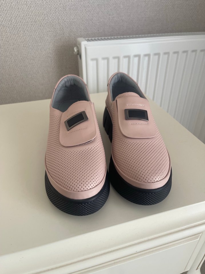 Pudra pembesi renkli, kauçuk malzemeden platform topuklu, tokalı kadın spor ayakkabısı, çağdaş sokak stili için uygun. Kalıbı kücük 36 numaraya olur