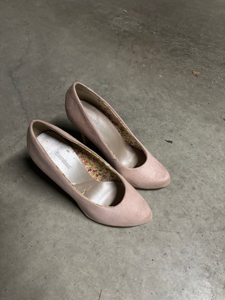 Pastel pudra pembesi renkte, klasik stiletto topuklu, düz desenli, kolay şıklık sunan kadın ayakkabısı.
