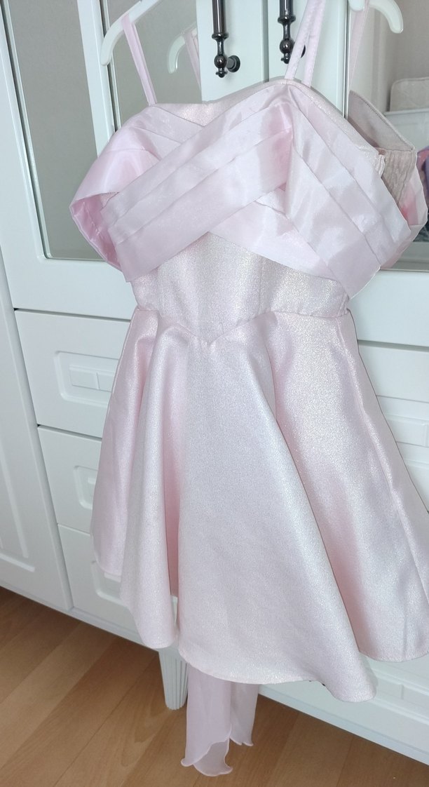 Pudra pembe Straplez askılı, Çocuk Elbise 6,7 yaş