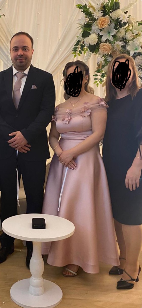 Pudra Pembe Straplez Midi Nişan Elbisesi