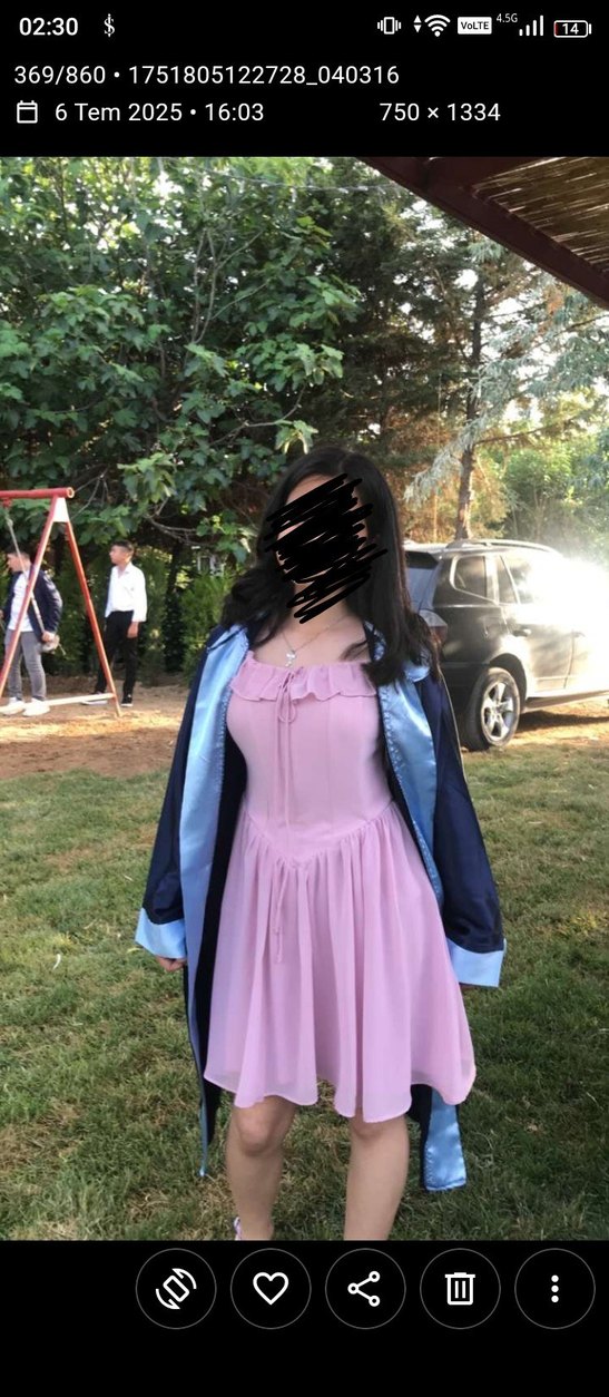 kizlarr mezunu elbisesii için çok güzell sadece mezuniyetmde giydim. pudra pembe renkte, uzun kollu, straplez yaka ve volan detaylı bohem tarzda midi elbise. Salaş kesimiyle parti için uygundur.