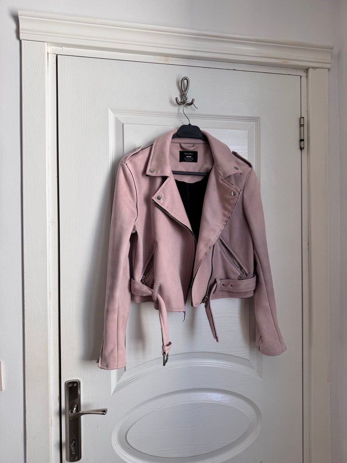 Pudra Pembe Süet Kemerli Ceket