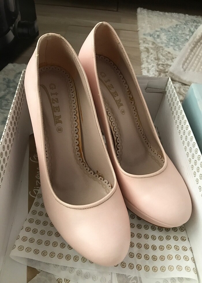Pudra pembe topuklu sıfır ayakkabı