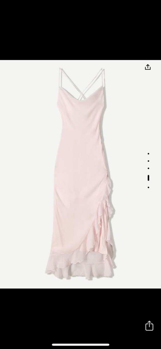 Pudra Pembe Uzun Askılı Fırfırlı Elbise