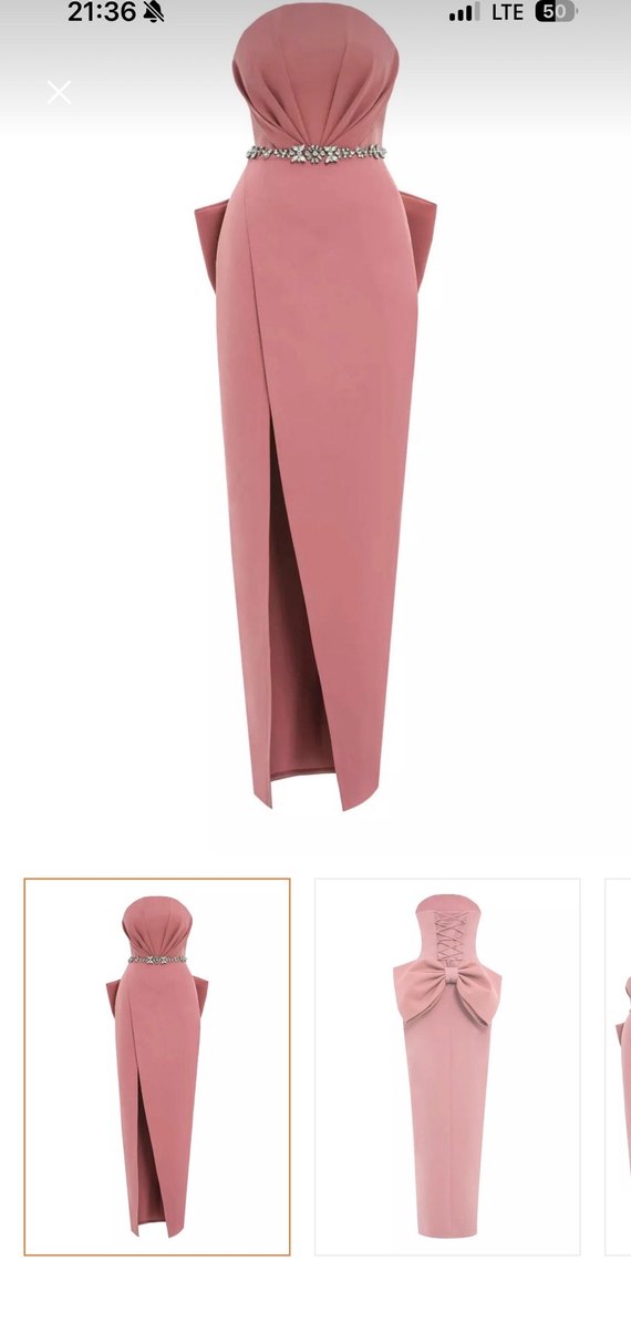 Pudra Pembe Uzun Drapeli Straplez Kalem Elbise
