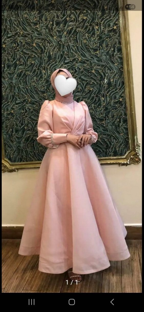 Pudra Pembe Uzun Drapeli Tesettür Abiye satılık